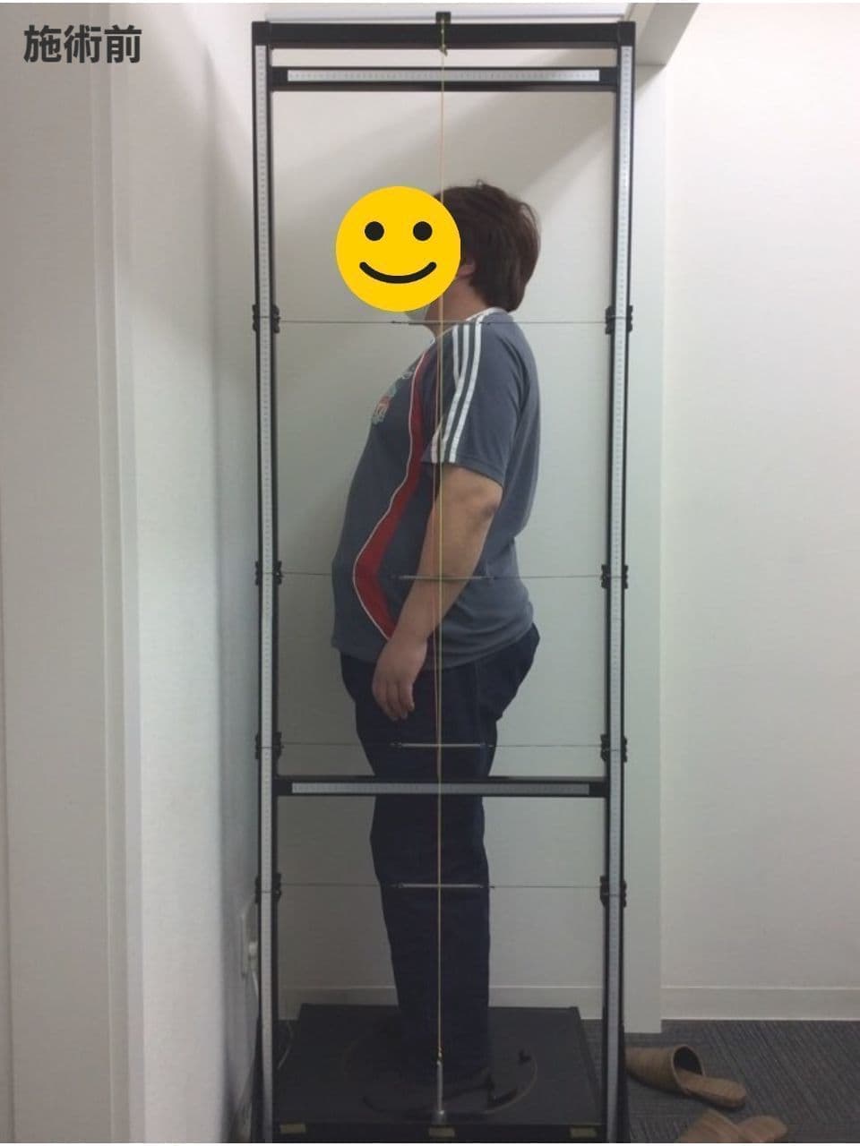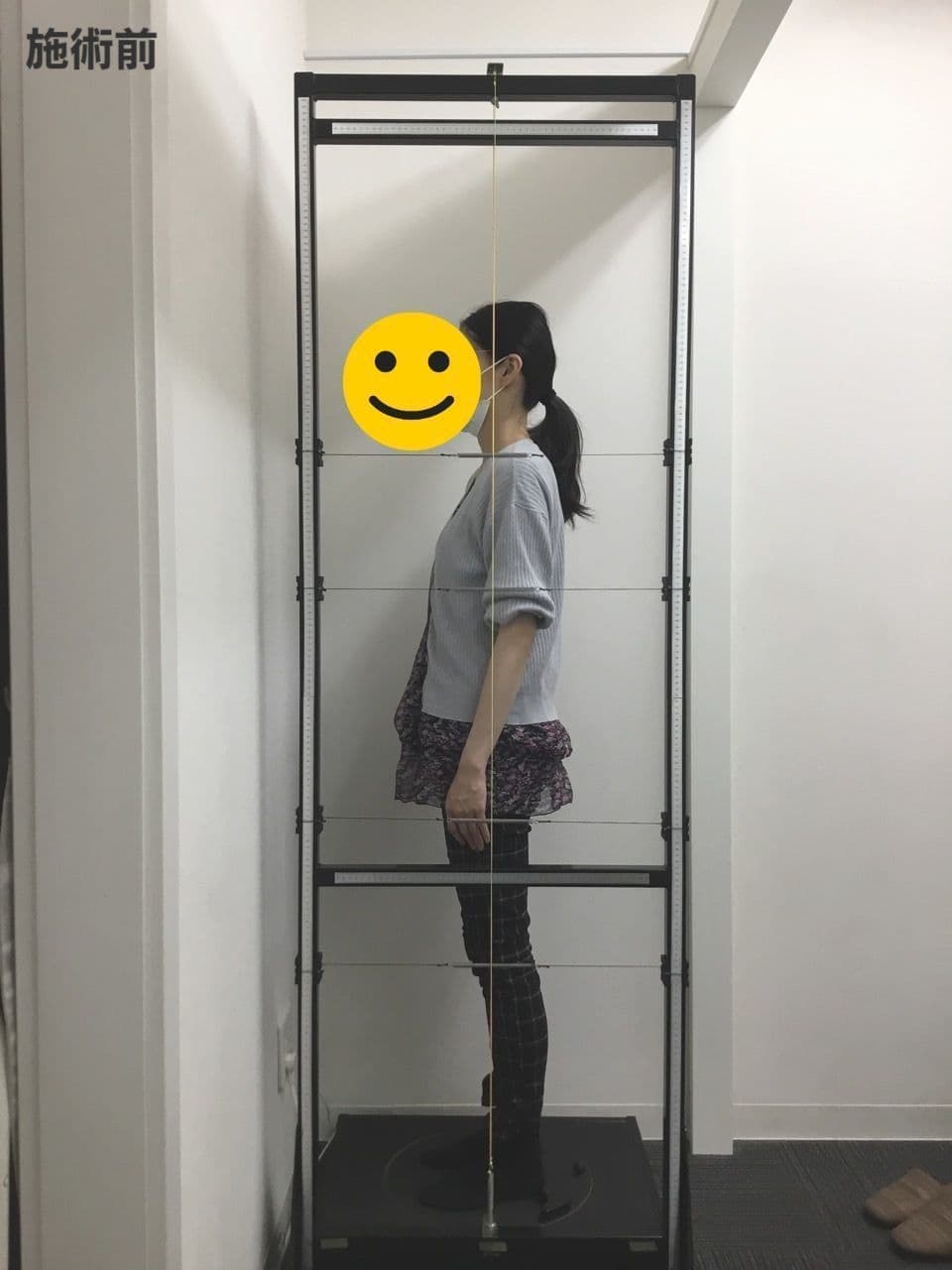 施術前は後ろ重心でしたが、施術後に安定した重心となり、姿勢が良くなりました。