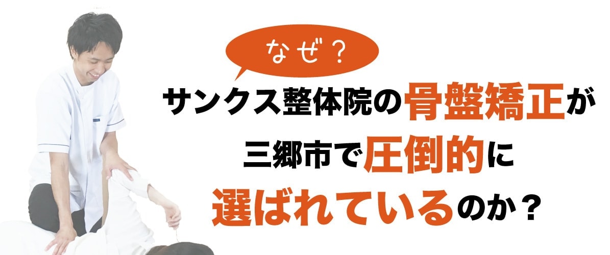 三郷駅のサンクス整体院では、肩こり・腰痛・関節痛などのお悩みに対して、根本的な改善を目指した骨格・骨盤の施術を行っています。