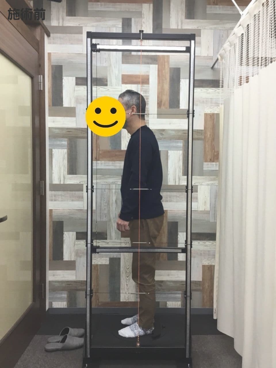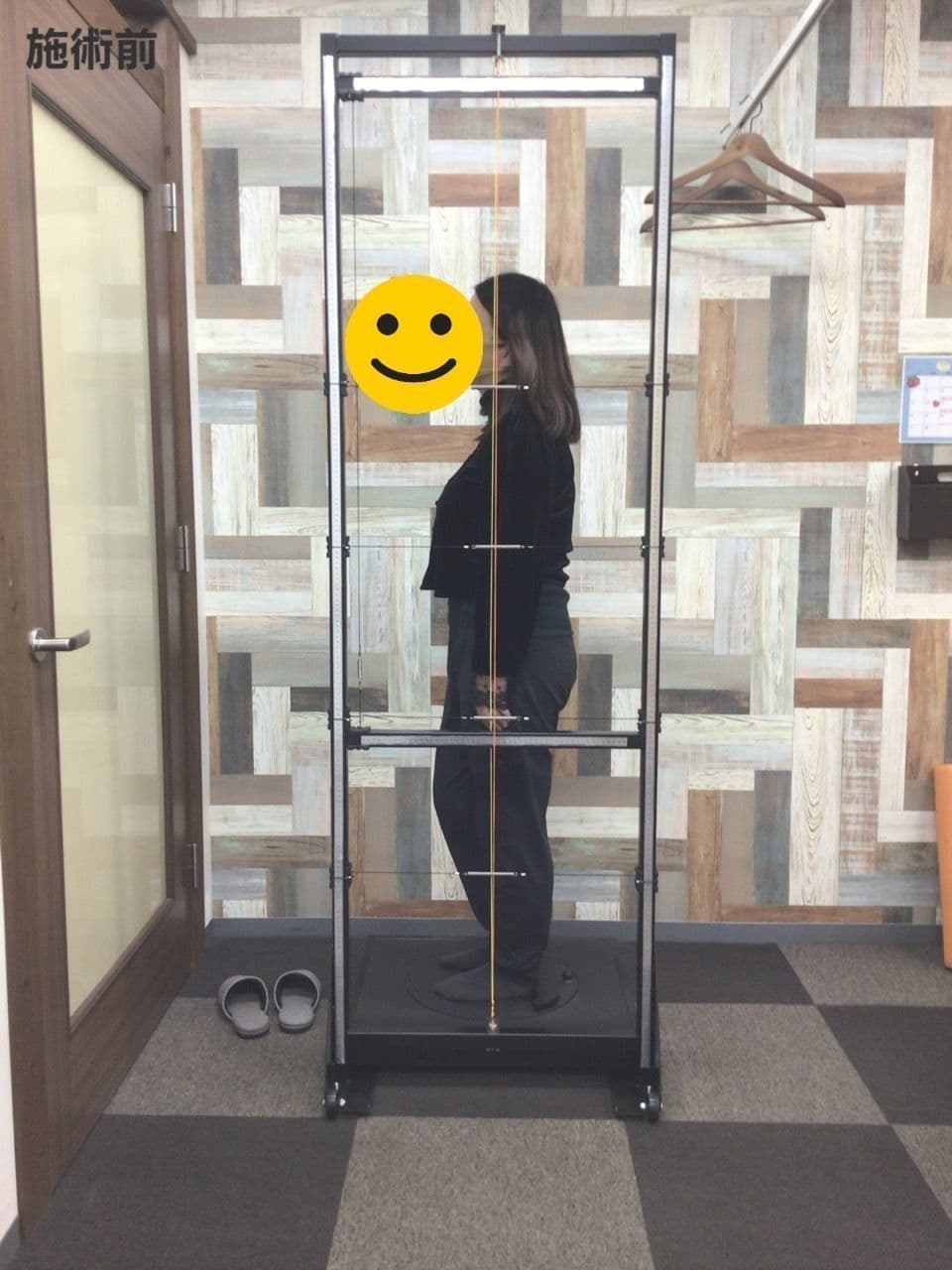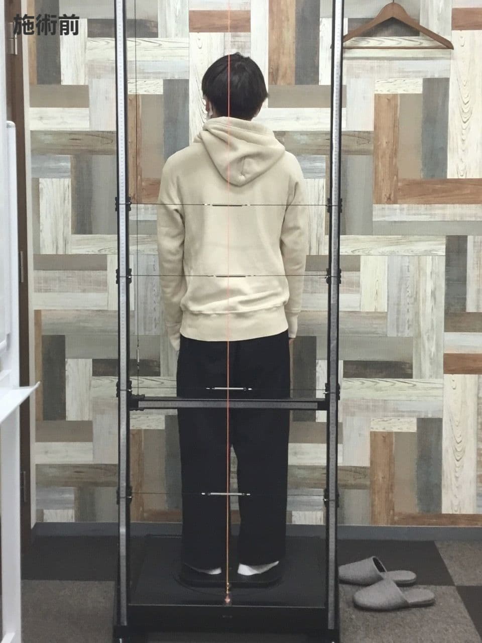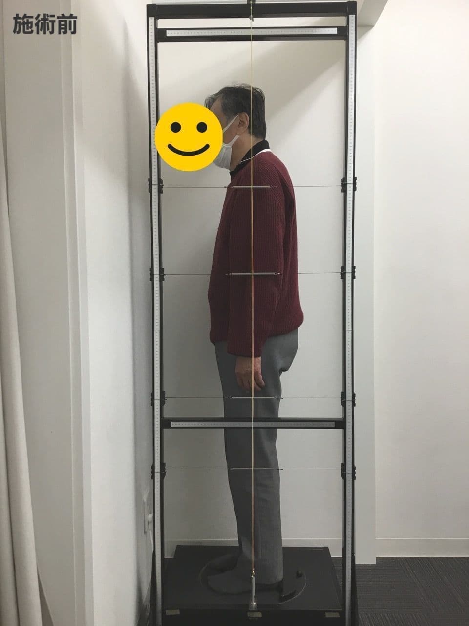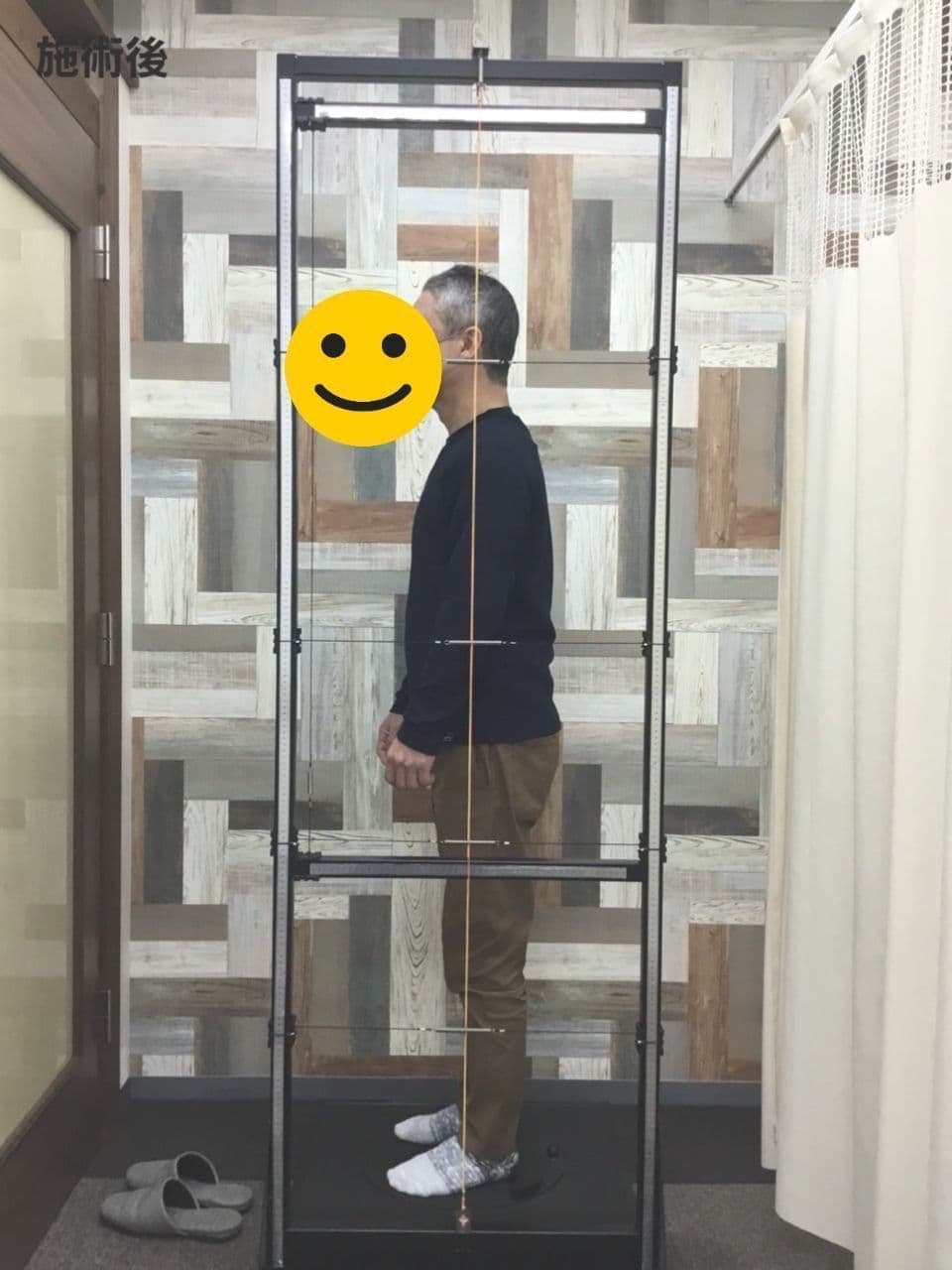 施術前は後ろ重心になっていましたが、施術後に安定した重心となり、姿勢が良くなりました。