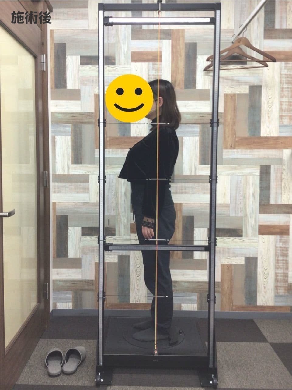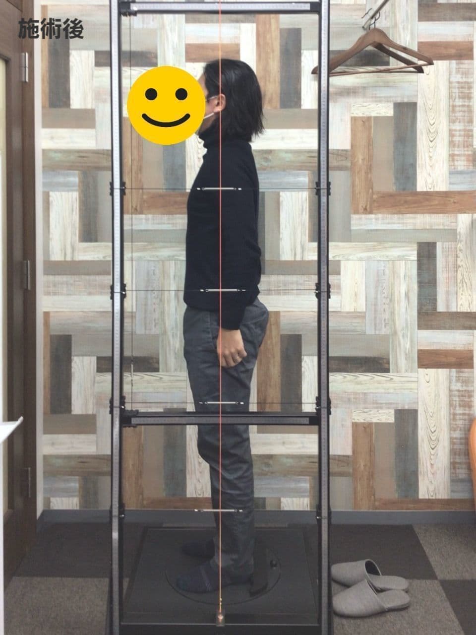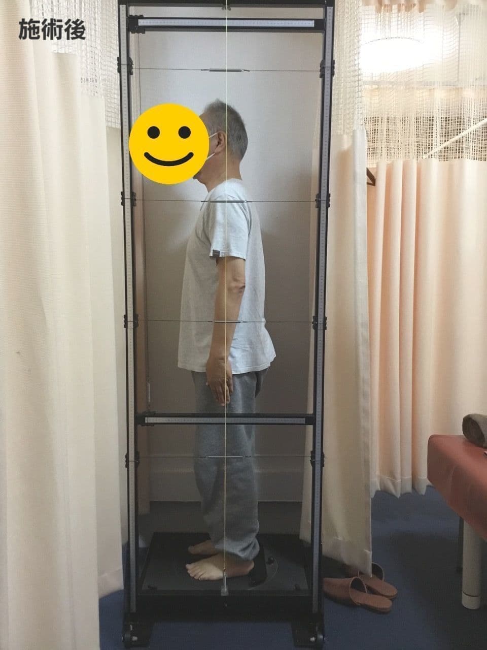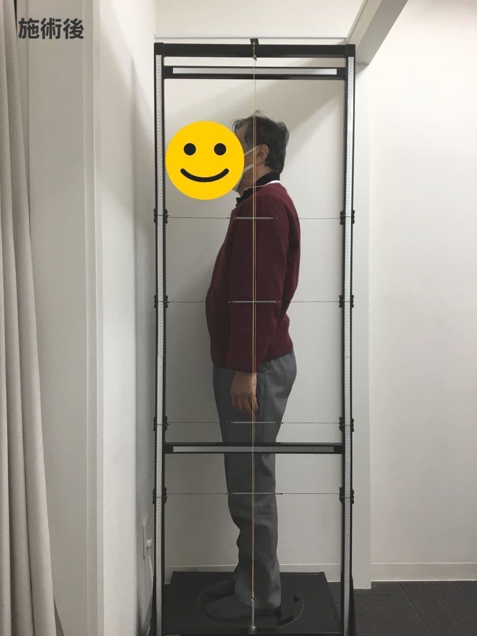 施術前は猫背が強かったですが、施術後に大幅に猫背が改善されました。