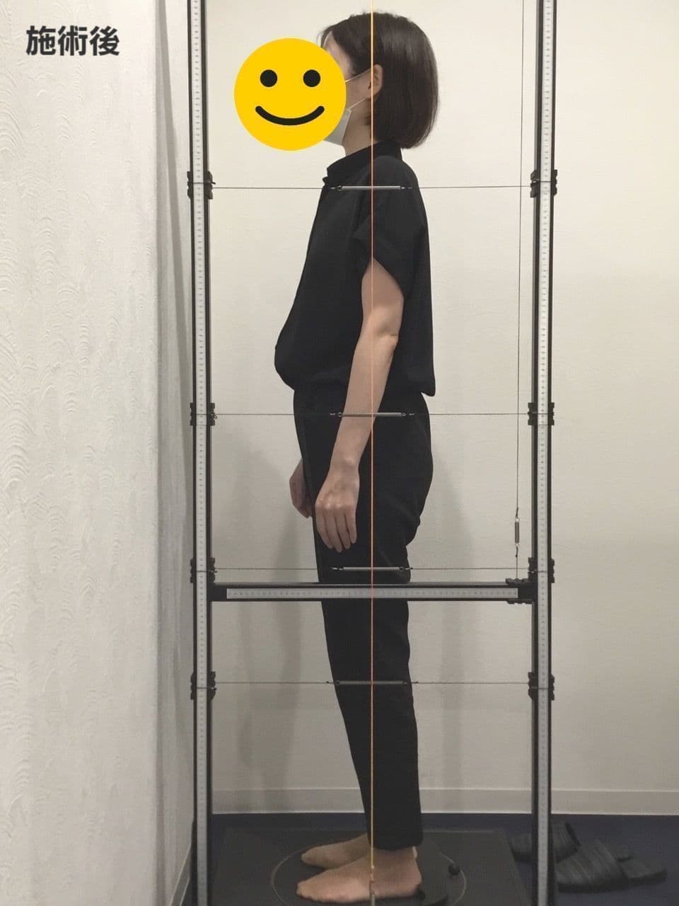 施術前と施術後を比べて上半身の姿勢が改善され、より女性らしい姿勢に変わりました。