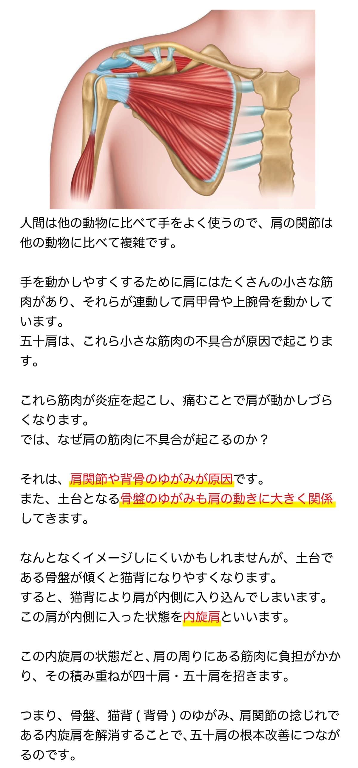 症状が治まっても、肩の内旋や猫背を治さなければ再発する可能性があります。そこで当院では、根本的な原因である姿勢の悪さや関節の捻じれを改善します。