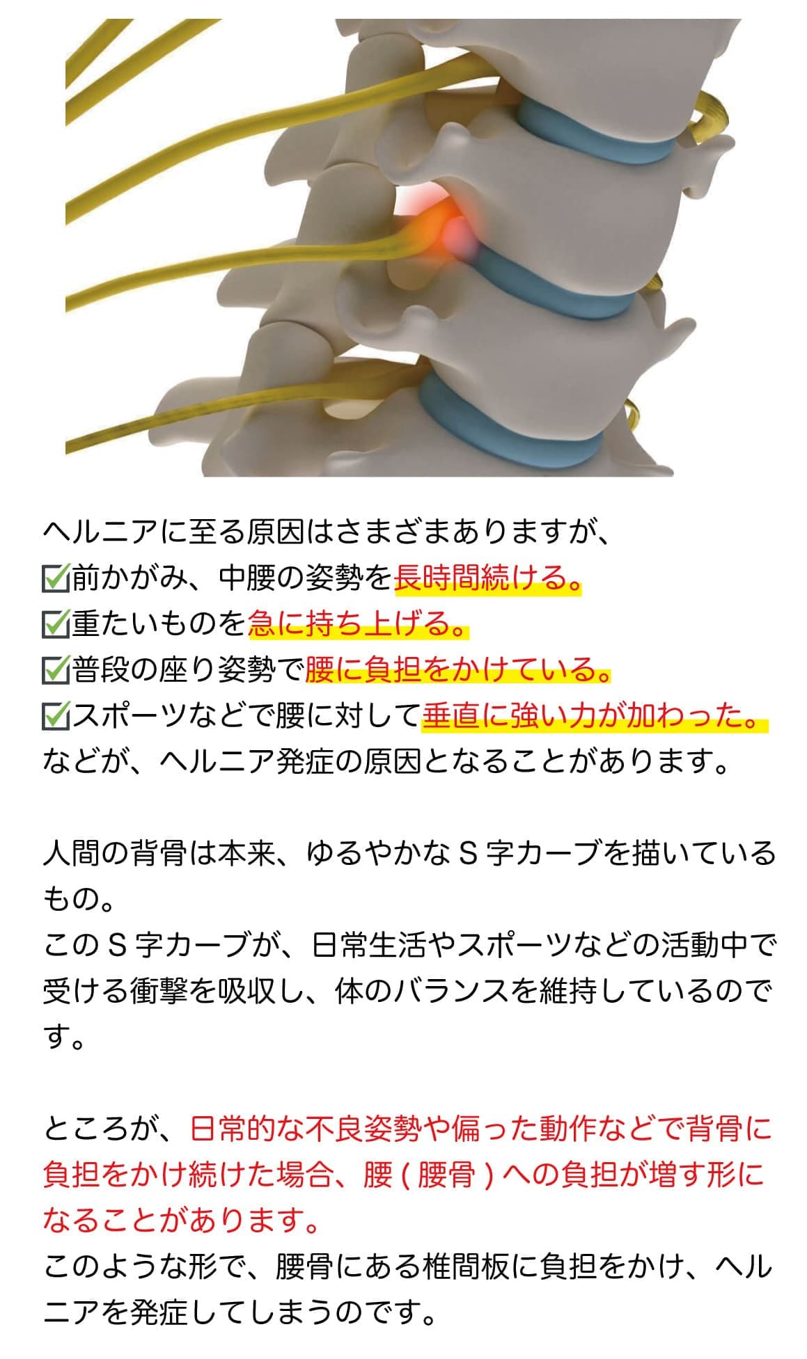 ヘルニアを減らすには、こうした日常生活の習慣を改善しなければなりません。